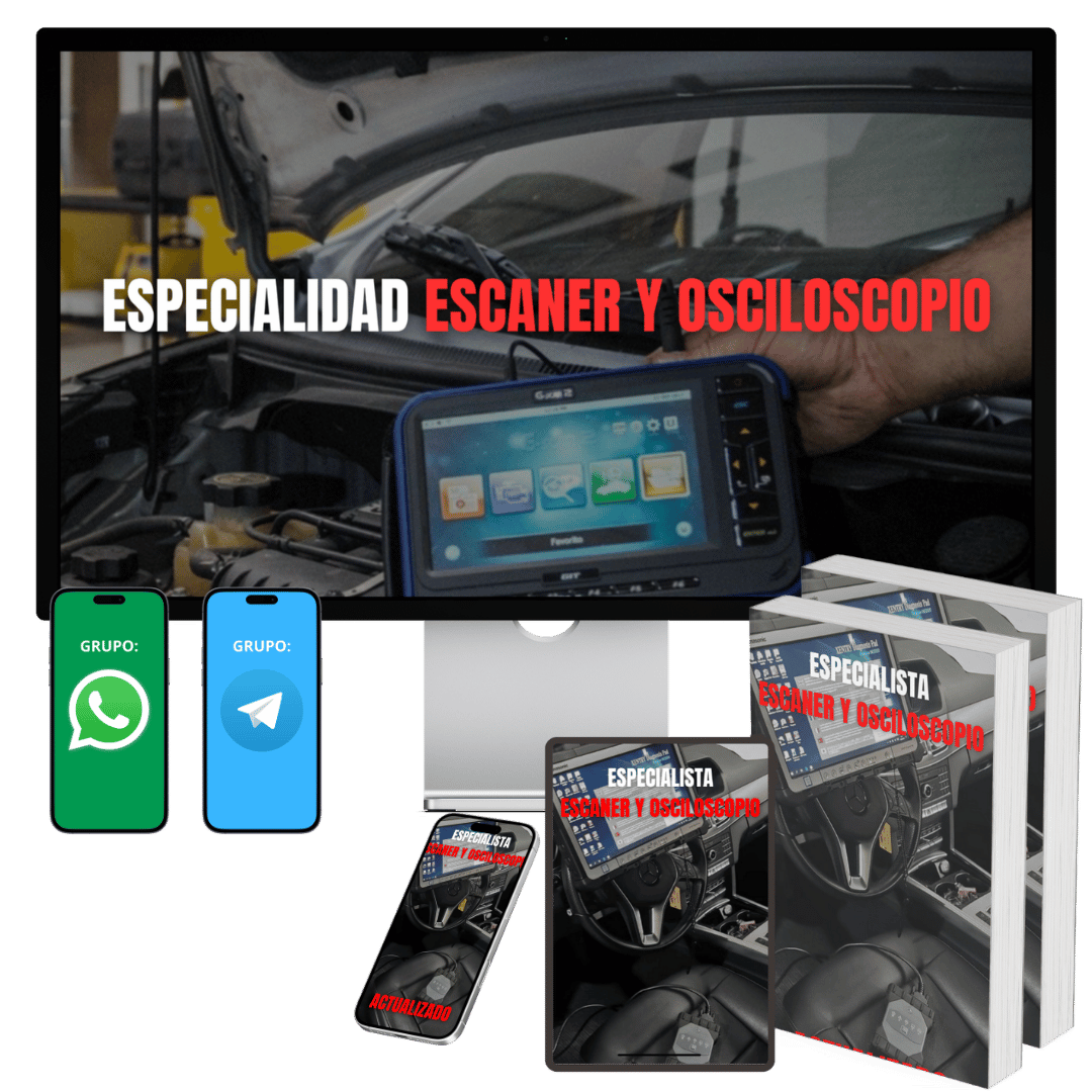 Además del Contenido de los Cursos, también obtendrás: Modulos EXTRA con manuales descargables, clases prácticas y diagnósticos reales con escáner y osciloscopio.